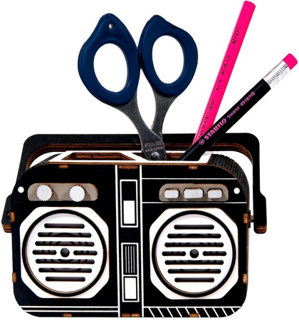 Kolorowy organizer w kształcie radia, który pomoże utrzymać ład i porządek na Twoim biurku. Zestaw został wykonany z wysokiej jakości sklejki i jest w postaci arkuszy z wstępnie wyciętymi i ponumerowanymi elementami. Przed montażem należy oddzielić części od wykroju, a następnie połączyć bez użycia kleju, zgodnie ze szczegółową instrukcją dołączoną do opakowania.